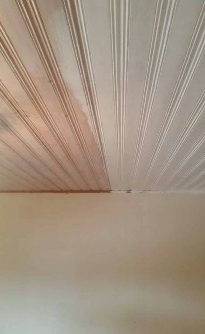 Så här har vårat sovrum sett ut sedan vi flyttade hit för ca 1,5 år sedan. Beige strukturtapet på tre väggar och brunrandig tapet på en vägg. Inte så fint men vi har trivts väldigt bra ändå, men nu är det superdags att göra om. Som jag har längtat! 😀 På denna vägg hade fem garderober byggts in, och först tänkte vi behålla dem och bara haka av dörrarna och montera stora skjutdörrar framför, men vi ändrade oss och tog bort dom. Det blir nya garderober där istället. Så nu när vi rivit ut allt, rivit ner tapeten och satt panel på väggarna så ska allt målas. Taket var bara ljusbetsat, så det fick ett par strykningar vit färg. Vilken skillnad det blir. Innan kändes ju taket typ vitt, men nu ÄR det vitt! Panelen målade vi grå. Fönstret har alltid varit träfärgat på insidan, vilket inte faller den här dalkullan i smaken. Nu är det äntligen vitt och jag har redan målat två fönster till och resten av fönstren ska få sig en ommålning de också! Tapeten har kommit och imorgon ska Hjärtat tapetsera. Sen ska golvet läggas och efter det får jag äntligen INREDA! 😍 Fortsättning följer när vi kommit längre. Kram